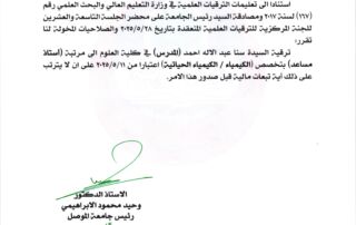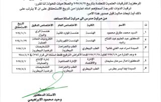 أمر جامعي لمرتبة أستاذ مساعد ج27 بتاريخ 2025/5/29