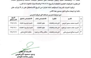 أمر جامعي لمرتبة مدرس ج25بتاريخ 2025/5/14