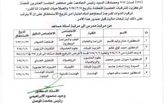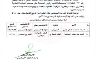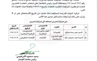 صدور الأمر الجامعي لعدد من تدريسيي جامعتنا الى مرتبة أستاذ مساعد