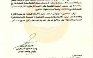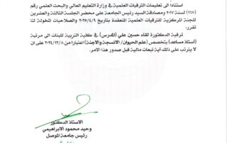 صدور الأمر الجامعي لتدريسي من جامعتنا الى مرتبة أستاذ مساعد