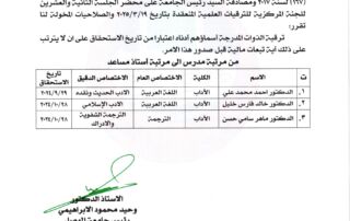 أمر جامعي لمرتبة أستاذ مساعد ج20 2025/3/24