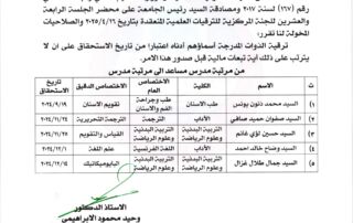 أمر جامعي لمرتبة مدرس ج24 بتاريخ 2025/5/5