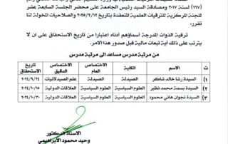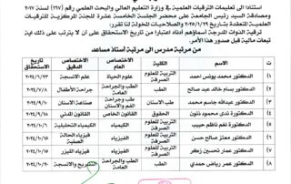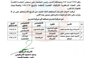 أمر جامعي لمرتبة أستاذ مساعد ج 17 و ج 18 2025/2/27 و 2025/3/9