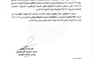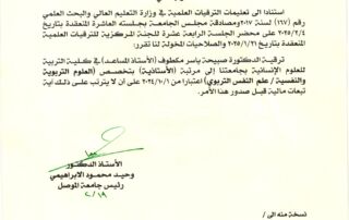 أمر جامعي لمرتبة الاستاذية ج15 بتاريخ 2025/3/9