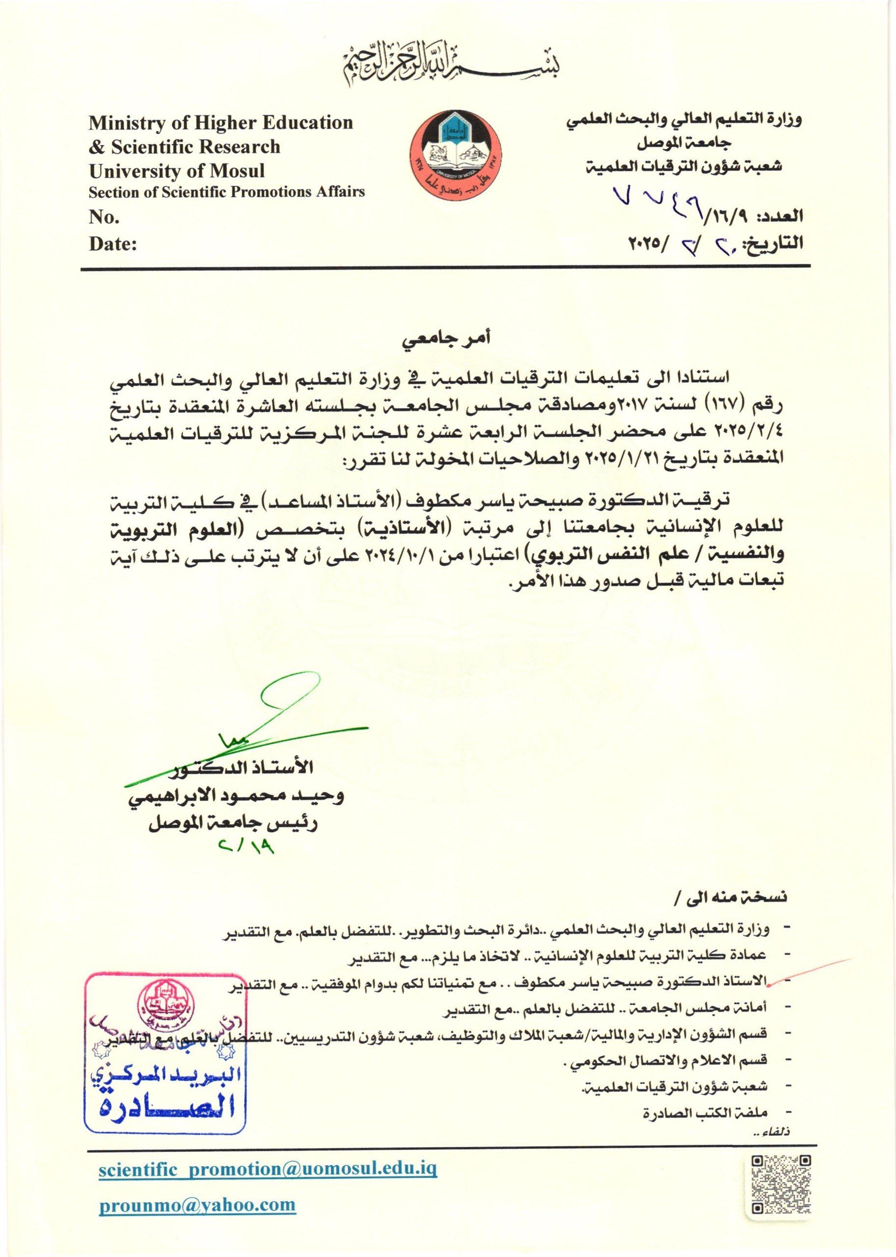 أمر جامعي لمرتبة أستاذ مساعد ج16