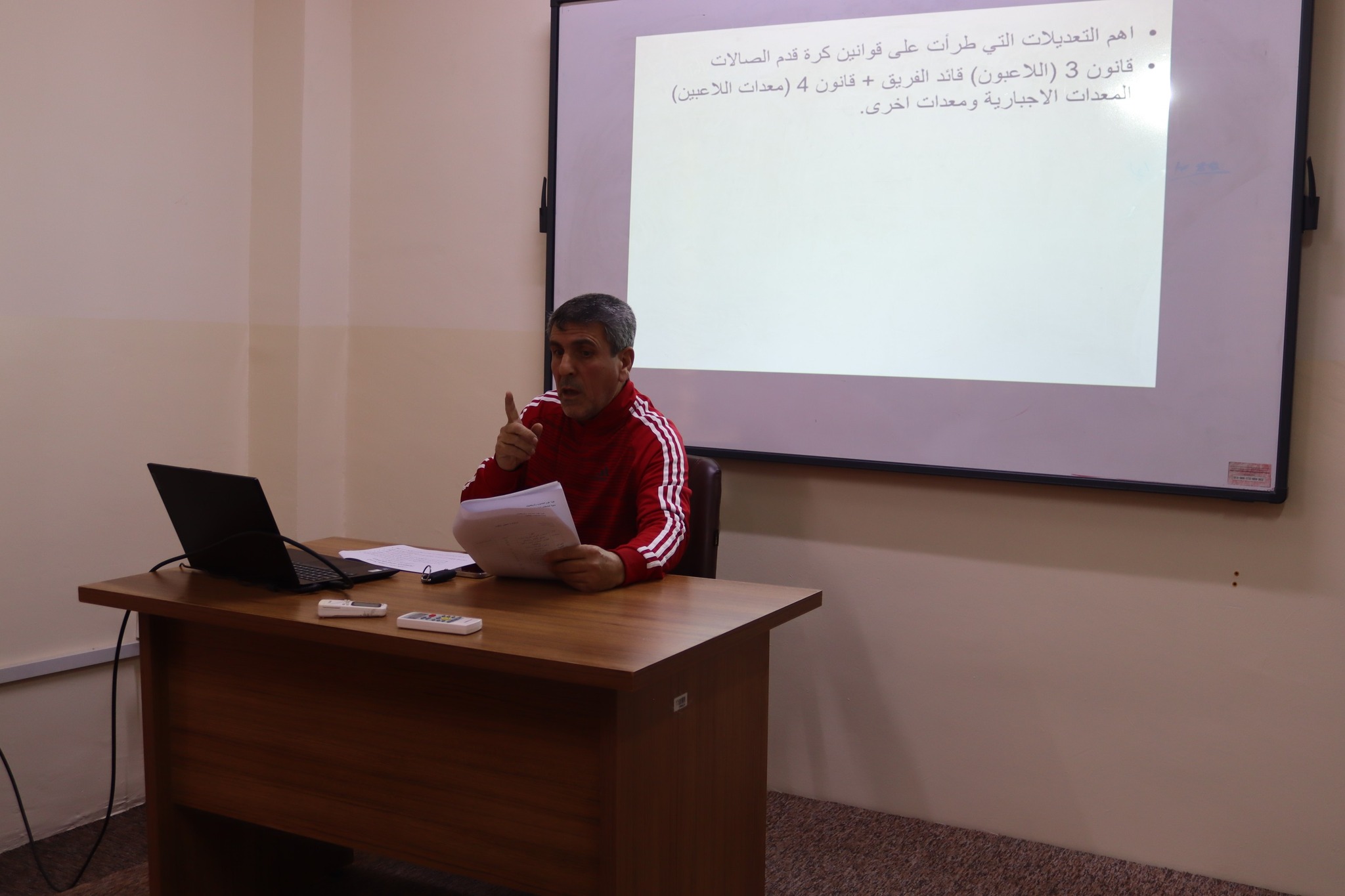 ضمن دورات التعليم المستمر، أقام قسم النشاطات الطلابية اليوم الأربعاء الموافق ٢٠٢٥/٣/١٩ في قاعة الاجتماعات التابعة لفرع الألعاب الفردية في كلية التربية البدنية وعلوم الرياضة محاضرة بعنوان "مهام وواجبات حكام كرة قدم الصالات وأهم التعديلات [إقرأ المزيد]