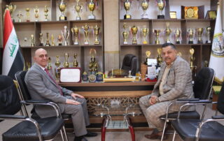 استقبل الأستاذ المساعد الدكتور عبدالملك سليمان محمد مدير قسم النشاطات الطلابية بجامعة الموصل في مكتبه الأستاذ الدكتور نبراس يونس محمد عميد كلية التربية البدنية وعلوم الرياضة