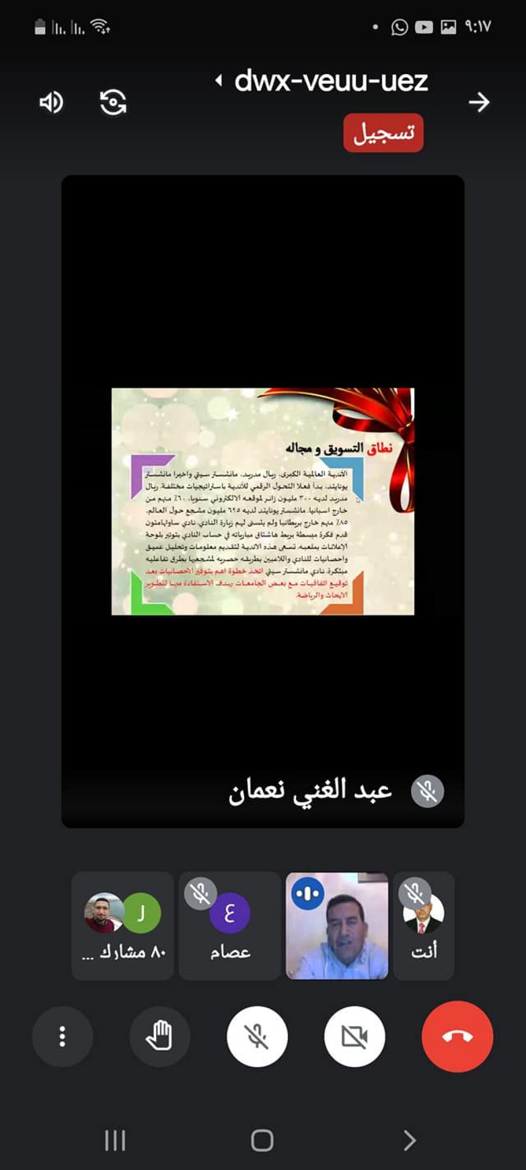 ورشة الكترونية عملية متخصصة بعنوان( الاستثمار الرياضي بين الواقع والطموح)