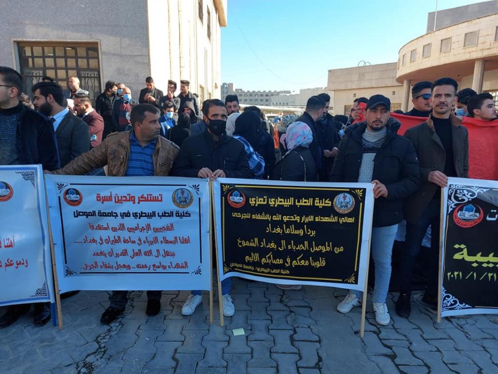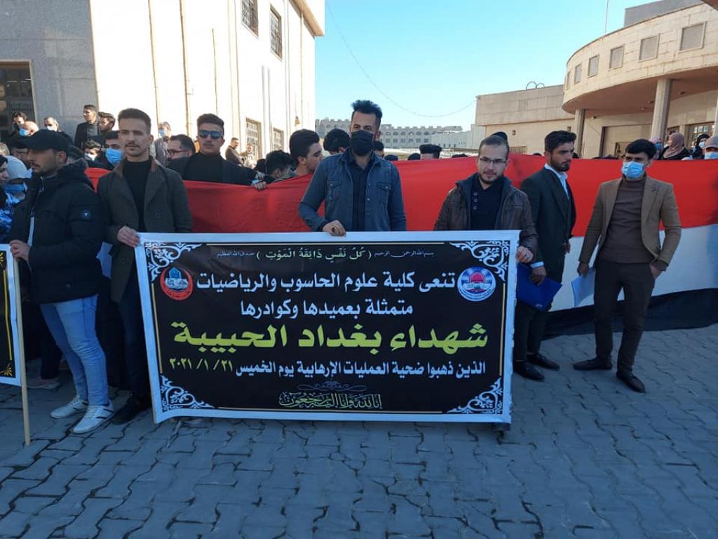 برعاية الاستاذ الدكتور قصي الاحمدي رئيس جامعة الموصل المحترم ومشاركة قسم النشاطات الطلابية إنطلقت صباح اليوم الأحد الموافق ٢٤ كانون الثاني للعام ٢٠٢١ وقفة التضامن وإقامة صلاة الغائب على أرواح شهداء العراق، شهداء ساحة الطيران للعمل الغادر والجبان الذي استهدف المدنيين في ساحة الطيران ببغداد في خميس دام غيّب شباب الوطن الواحد ونثر الحزن في بيوت العراقيين من الشمال الى الجنوب، هؤلاء الشهداء الذين سالت دمائهم على أرض بغداد الطاهرة ولم تكن لهم من جريمة سوى أنهم عراقيون.