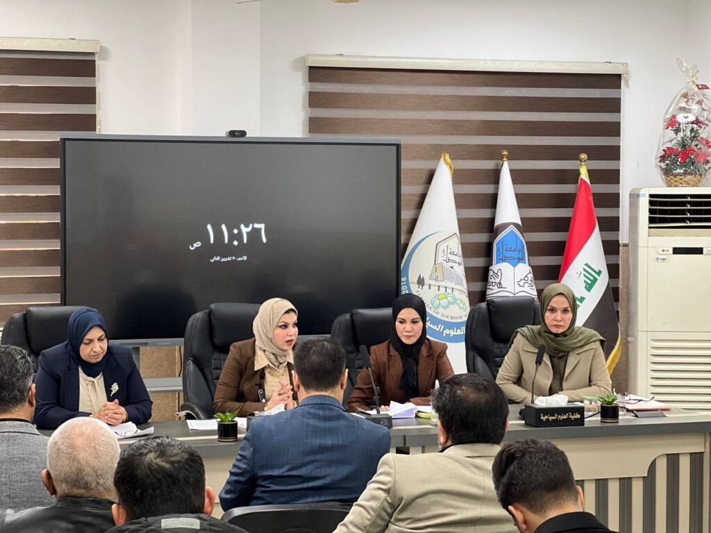برعاية السيد رئيس جامعة الموصل الأستاذ الدكتور وحيد محمود الإبراهيمي المحترم، وضمن توجه الجامعة لنشر الوعي ومكافحة الظواهر السلبية في المجتمع، نظمت كلية العلوم السياحية وبإشراف السيدة عميد الكلية الأستاذ الدكتورة منال رأفت خالد، وبالتعاون مع مديرية مكافحة المخدرات والمؤثرات العقلية، ورئاسة جامعة الموصل /قسم الدراسات والتخطيط / وحدة التنمية المستدامة، ورشة عمل موسومة بعنوان “دور القطاع السياحي في الوقاية من ظاهرة المخدرات”، وذلك يوم الاثنين الموافق ١ كانون الأول ٢٠٢٥.