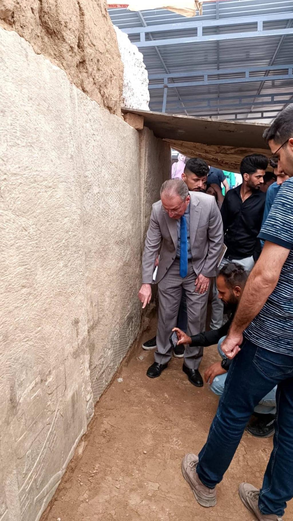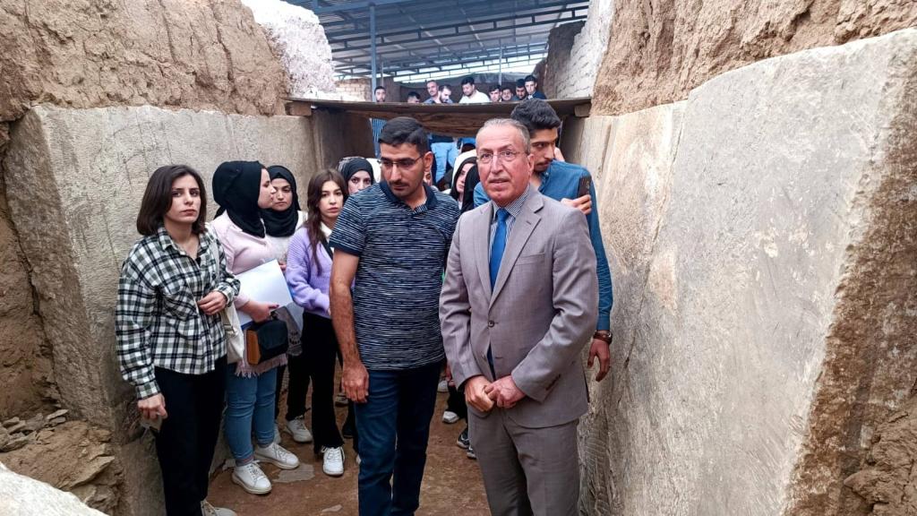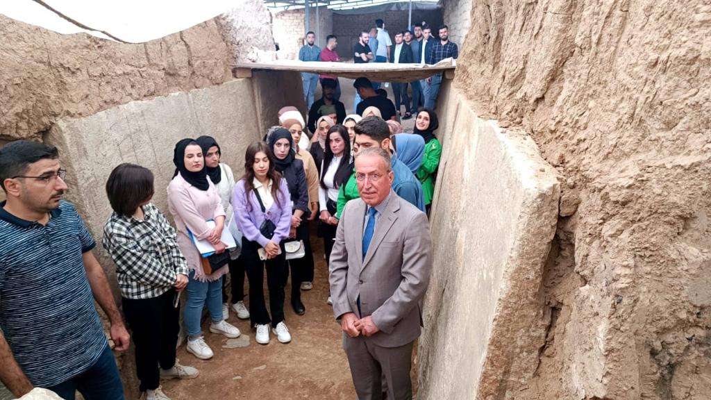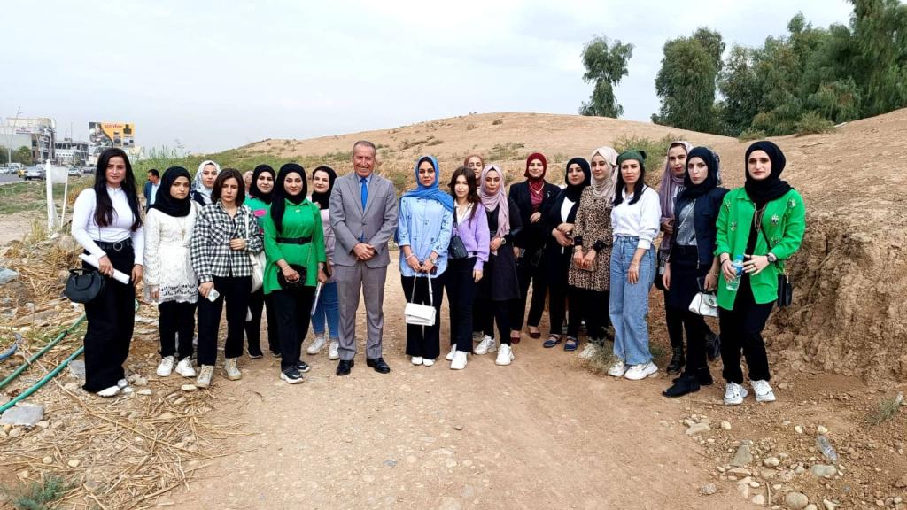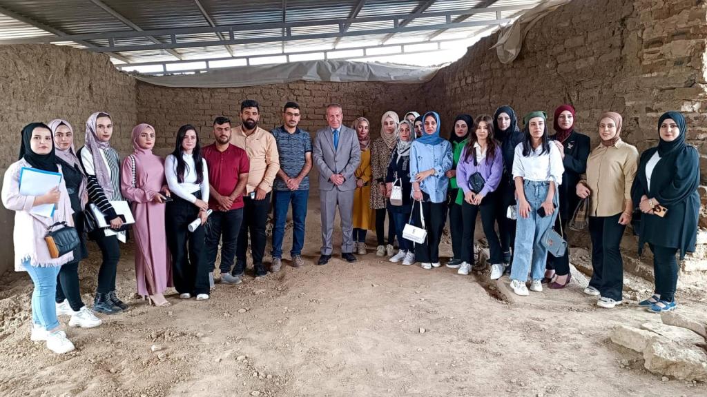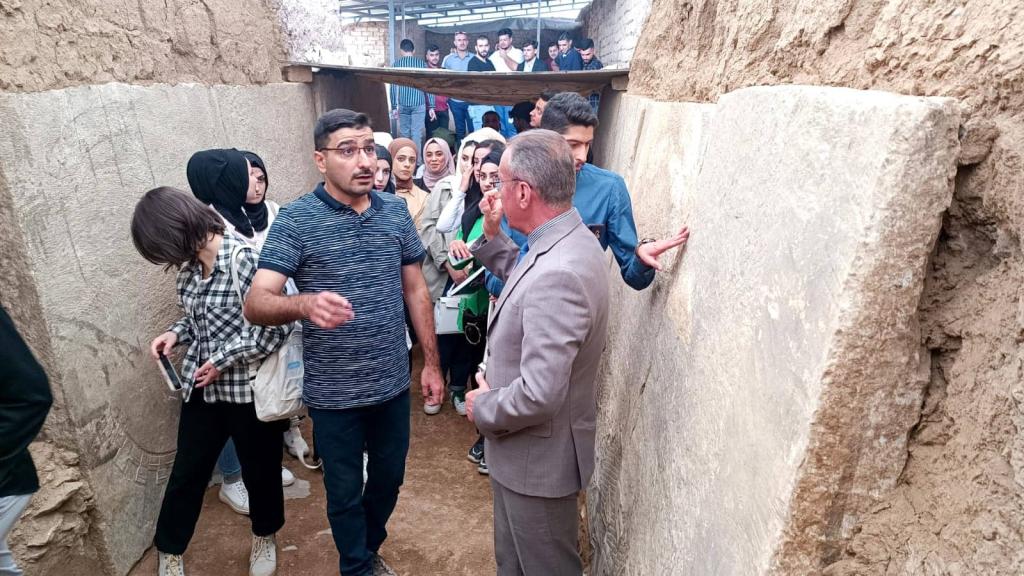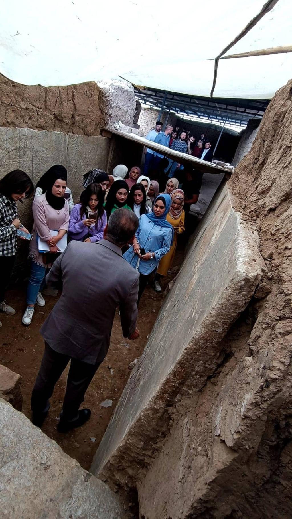 زار طلبة كلية العلوم السياحية ” باب المسقى ” أو كما يطلق عليه ” ماشكي ” باللغة الآشورية يوم الاثنين المصادف 2022/10/24 ضمن سلسلة من الزيارات ووفقاً لبرنامج علمي تعتمده الكلية . رافق الطلبة السيد عميد الكلية أ.م.د. محمد نايف محمود وأطلعوا على احدى البوابات الآشورية وقصر الملك سنحاريب، حيث النقوش والرسوم التي تعكس الحضارة العريقة لمحافظة نينوى.وكان في استقبالهم الاستاذ فاضل محمد (مدير صيانة بوابة المسقى ) ، والسيد ابراهيم توفيق (معاون منقب آثار ) في زيارتهم التي هدفت إلى الاطلاع على الاكتشافات الحديثة وأعمال التنقيب الجارية من قبل بعثة التنقيب من جامعة بنسلفانيا.