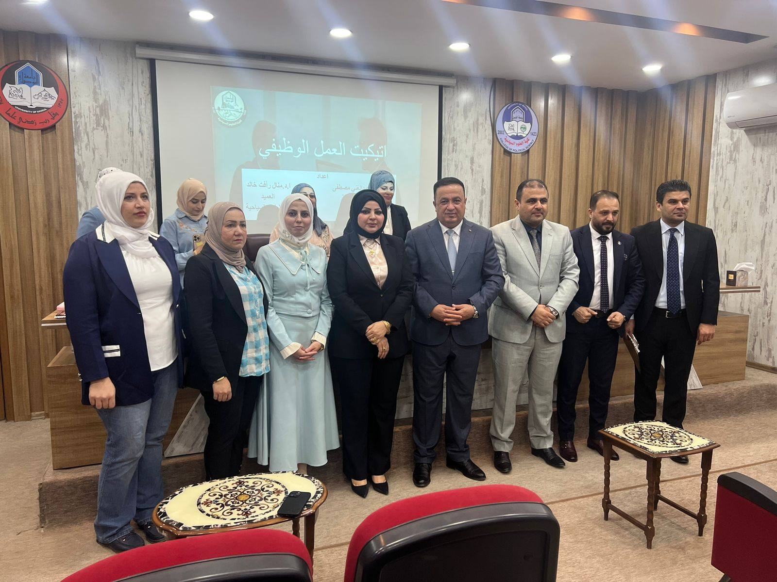 حيث تناولت المحاضرة مفاهيم الإتيكيت الرسمي والدبلوماسي، وأهميته في تعزيز المهارات الأكاديمية والعملية. كما قدمت المدرس المساعد زهراء عبد الغني، مسؤول وحدة الشؤون العلمية في الكلية، محاضرة قيمة ضمن فعاليات الدورة.