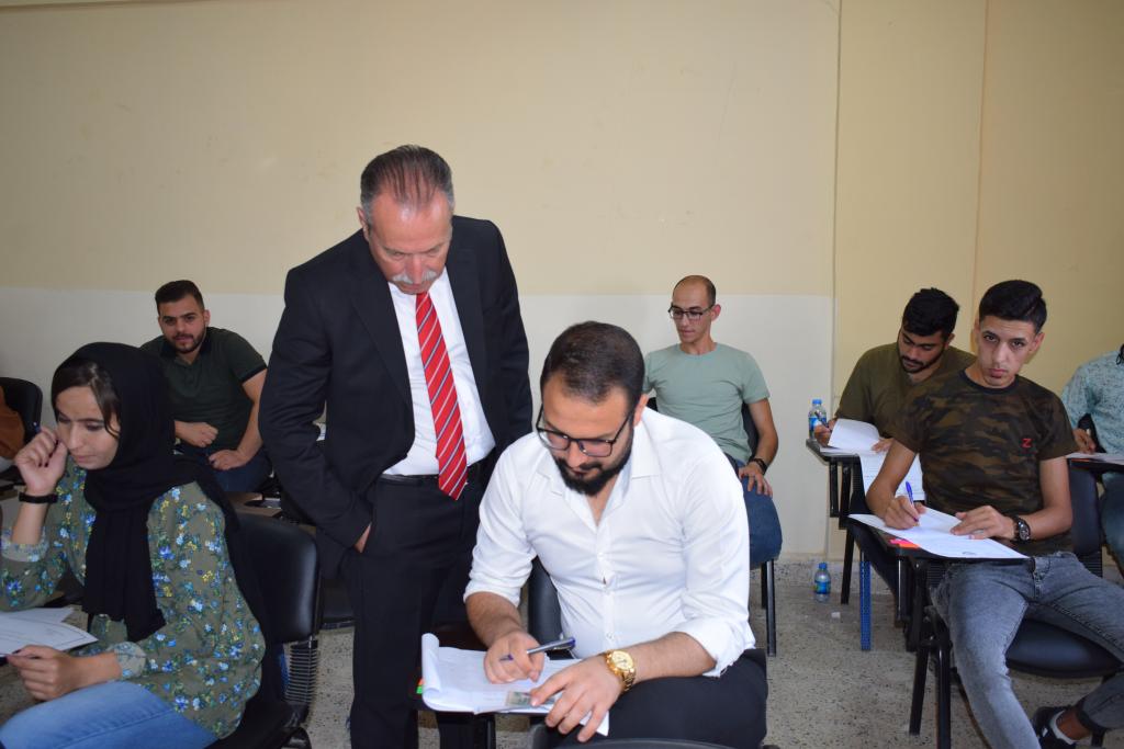 تفقد السيد عميد الكلية أ.م.د محمد نائف محمود سير الامتحانات النهائية للدورالأول للعام الدراسي 2021-2022 برفقة أ.م.د. منال رأفت خالد معاون العميد للشؤون العلمية ، و م.د زينة زهير محمد شيت معاون العميد للشؤون الإدارية ،مستفسرا من الطلبة عن طبيعة الاسئلة وملائمتها لوقت الامتحان ومدى وضوحها. وجاءت هذه الزيارة من أجل تشجيع الطلبة ومتابعة أحتياجاتهم إبان الإمتحان ، وفي نهاية جولته التفقدية تمنى النجاح والتوفيق لأبنائه الطلبة.