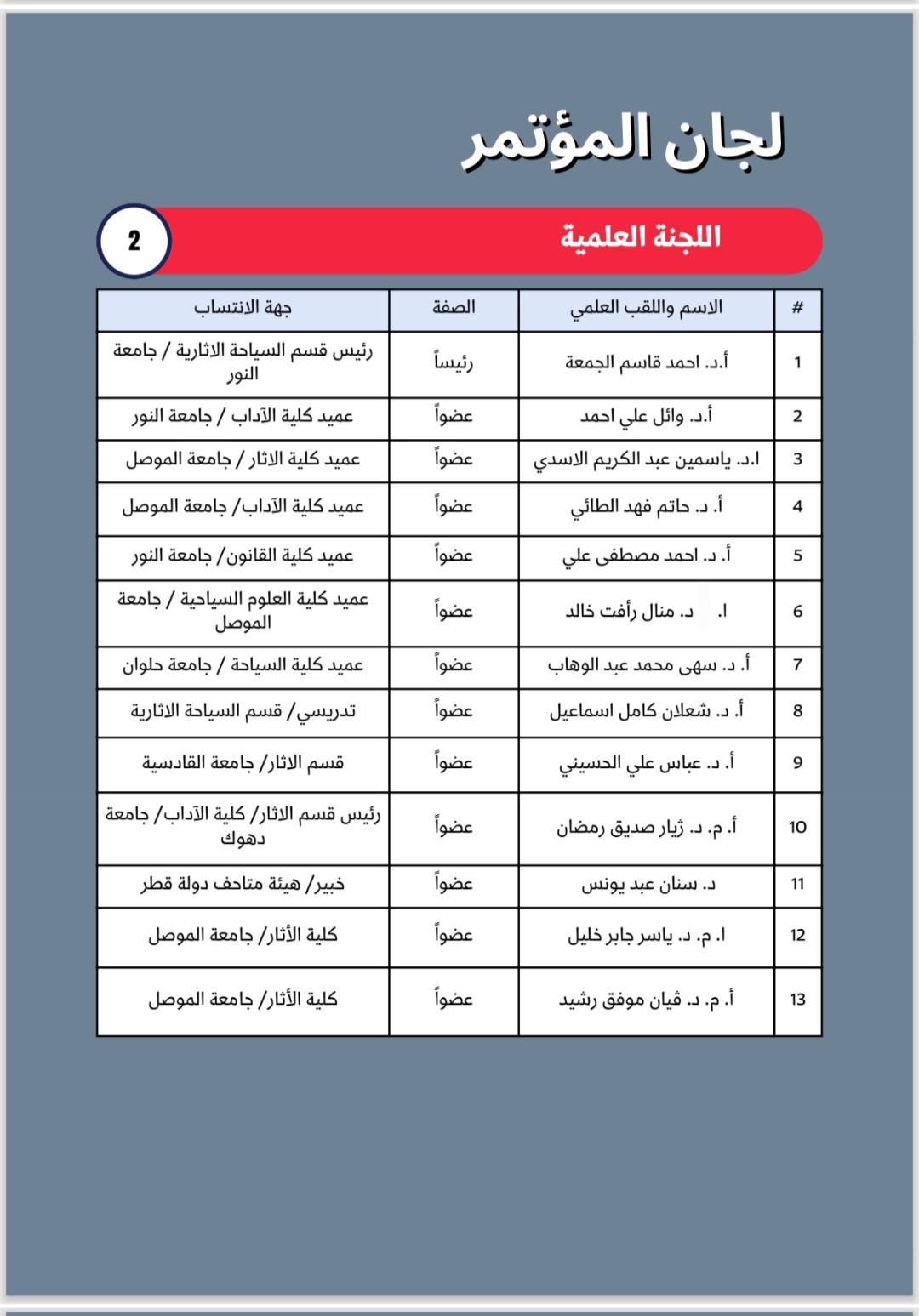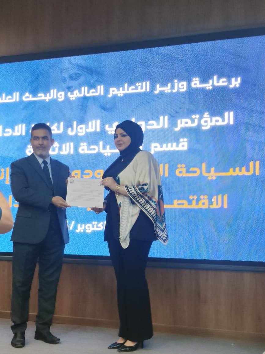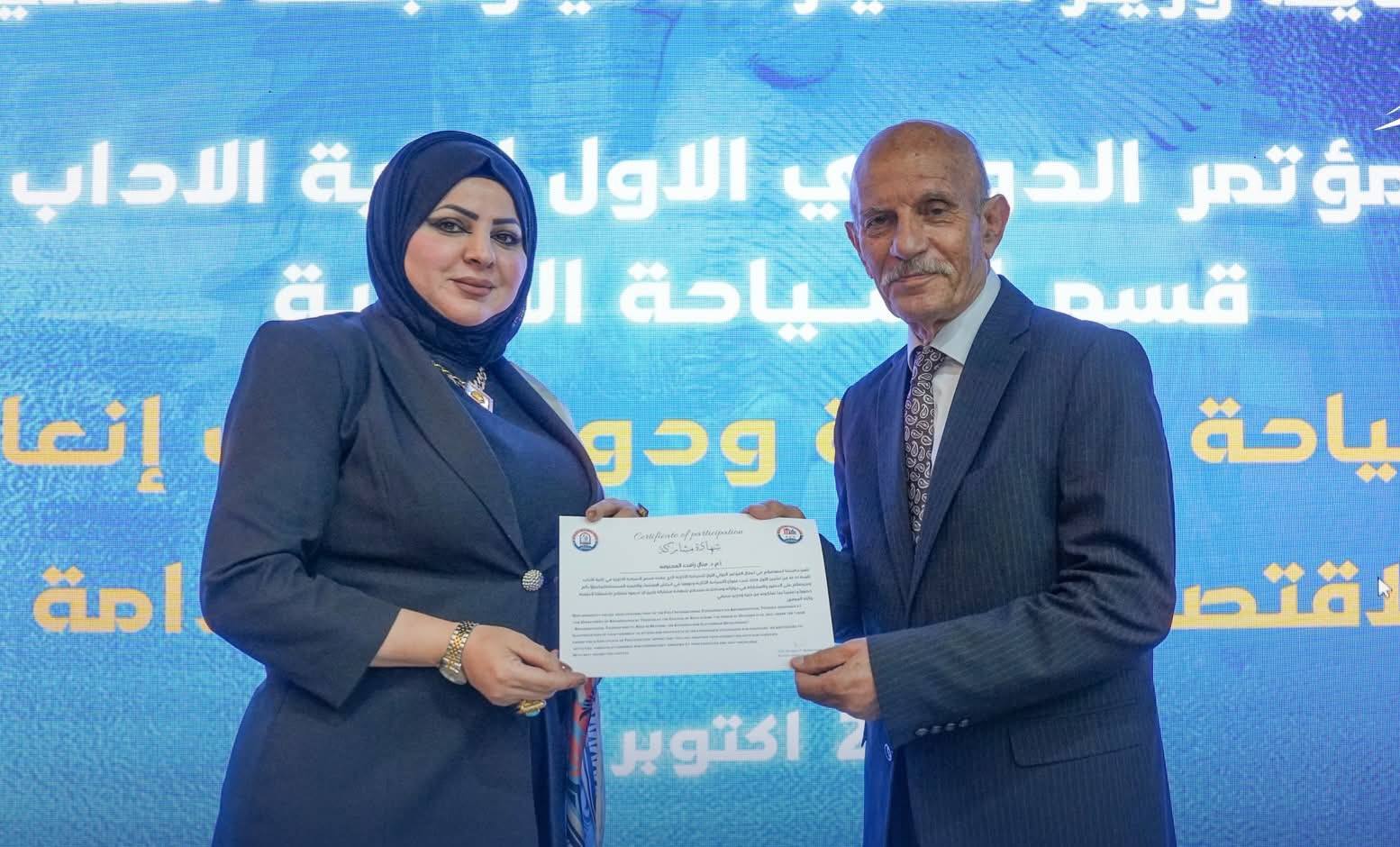 كما شارك كل من الاستاذ الدكتور رائد أمير راشد، رئيس قسم الدراسات السياحية، والدكتور هيثم حسين، مقرر القسم، ببحوث علمية تناولت موضوعات السياحة الآثارية ودورها في دعم الاقتصاد الوطني وتحقيق التنمية المستدامة.