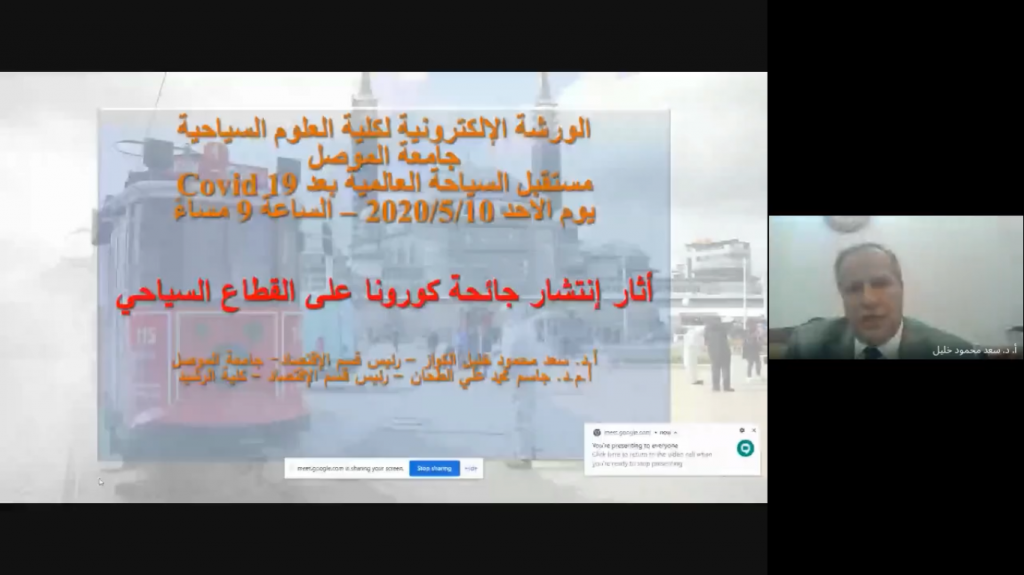 برعاية السيد رئيس جامعة الموصل الاستاذ الدكتور قصي كمال الدين الاحمدي المحترم، وبأشراف السيد عميد كلية العلوم السياحية الأستاذ المساعد الدكتور بشار حسن يوسف اقامت كلية العلوم السياحية ورشة عمل الكترونية تحت عنوان “مستقبل السياحة العالمية بعد Covid 19” في تمام الساعة التاسعة من مساء يوم الاحد الموافق 2020/5/10وعبر الفضاء الالكتروني .