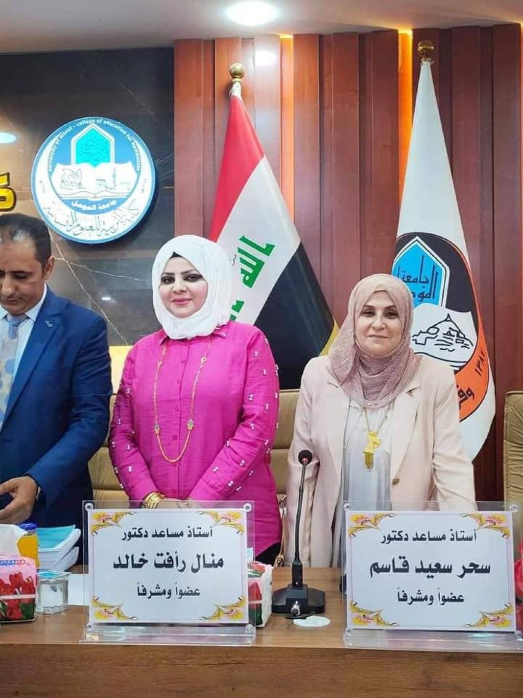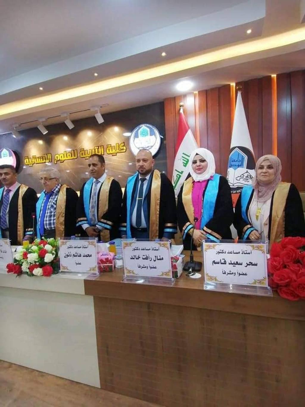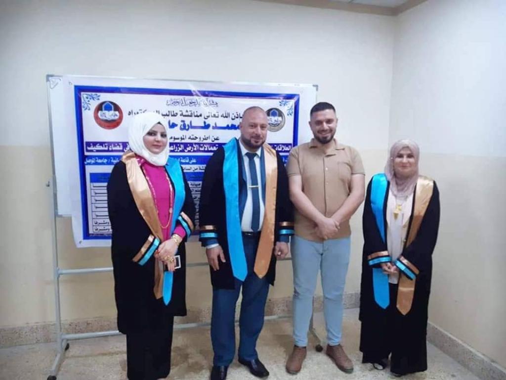 .شاركت أ.م.د. منال رأفت خالد معاون العميد للشؤون العلمية في كلية العلوم السياحية كعضواً ومشرفاً في لجنة مناقشة اطروحة طالب الدكتوراه (محمد طارق حامد) الموسومة “العلاقات المكانية الارتباطية بين استعمالات الارض الزراعية واصناف الترب في قضاء تلكيف ” وجرت المناقشة يوم الاثنين الموافق2022/8/22 في تمام الساعة التاسعة صباحاً في كلية التربية للعلوم الانسانية / جامعة الموصل .حضر جانباً منها السيد رئيس جامعة الموصل الأستاذ الدكتور قصي كمال الدين الاحمدي .وقد ترأس لجنة المناقشة الاستاذ الدكتور خالد فالح حسن وضمت في عضويتها السادة المدرجة أسمهائهم أدناة:1- الاستاذ الدكتور لمياء حسين علي عضوا2- الدكتور خالد أكبر عبدالله عضوا3- الاستاذ المساعد الدكتور محمد محسن عبد الله عضوا4- الاستاذ المساعد الدكتور محمد هاشم ذنون عضوا5- الاستاذ المساعد الدكتور سحر سعيد قاسم عضوا ومشرفا6- الاستاذ المساعد الدكتور منال رأفت خالد عضوا ومشرفانهاية المناقشة قررت اللجنة منح الطالب درجه الدكتوراه في الجغرافية البشرية بتقدير جيد جدا عالي.
