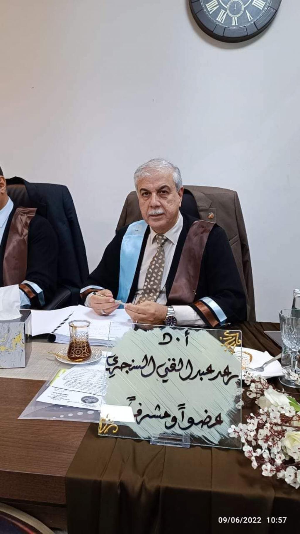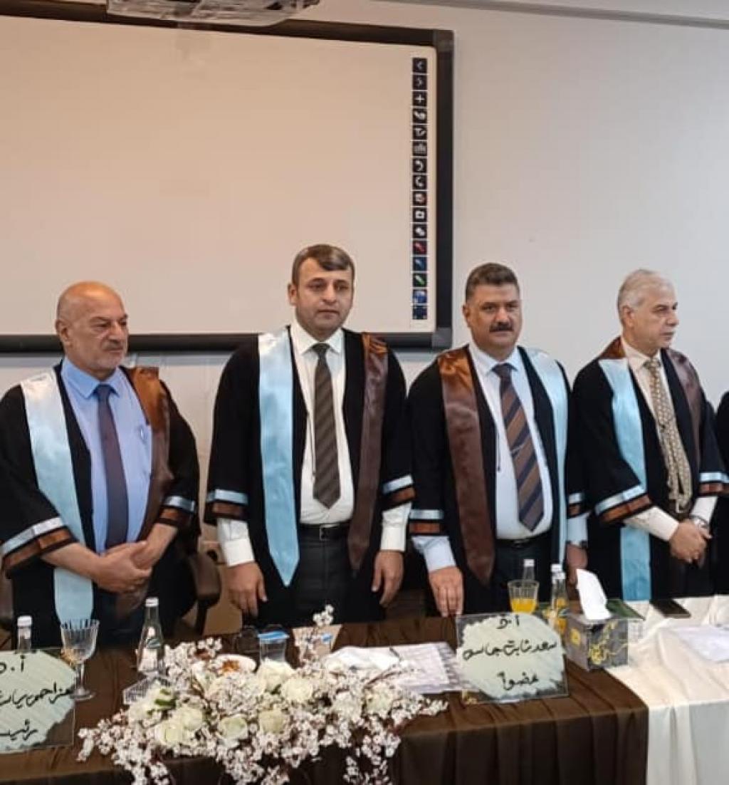 تراس لجنة المناقشة الأستاذ الدكتور مزاحم ياسين العطار من كلية الطب البيطري وعضوية كل من الأستاذ الدكتور عقيل حسين علي من جامعة الكتاب/ الكلية التقنية الطبية والأستاذ الدكتور سعد ثابت جاسم من جامعة الفلوجة/ كلية الطب البيطري والأستاذ المساعد الدكتورة نجوى ابراهيم خليل والأستاذ المساعد الدكتور عمر هاشم شيت من كلية الطب البيطري وبإشراف وعضوية الأستاذ الدكتور رعد عبد الغني السنجري من كلية الطب البيطري.