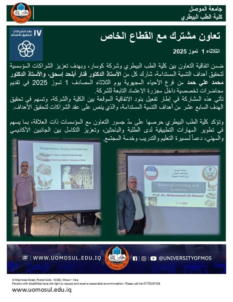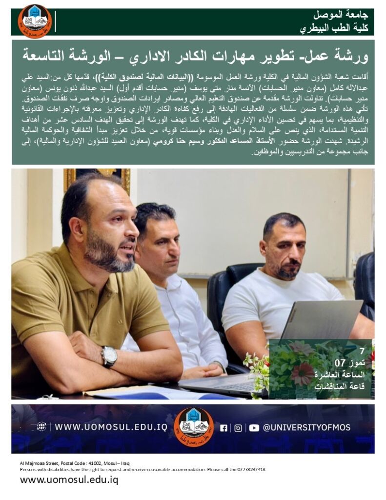 شهدت الورشة حضور الأستاذ الدكتور سيڤان سعد المحمود عميد الكلية وعدد من التدريسيات والتدريسيين والموظفات والطالبات، وسط تفاعل إيجابي ومناقشات هادفة.