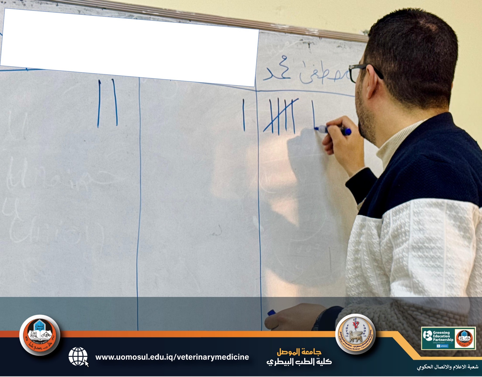 باشراف مباشر من الاستاذ الدكتور رعد عبدالغني بشير معاون العميد للشؤون العلمية وحضور كل من الاستاذ المساعد الدكتور عمار غانم محمد والاستاذ المساعد الدكتور ياسر محمد امين والاستاذ المساعد الدكتور زياد مكرم يوسف مسؤول شعبة الاعلام والاتصال الحكومي جرت اليوم انتخابات ممثل المرحلة الاولى بجو من الهدوء والديمقراطية ، حيث تنافس ثلاثة مرشحين وجرى التصويت لهم من قبل الطلبة بكل شفافية وديموقراطية وفاز الطالب مصطفى محمد بأغلبية الاصوات.