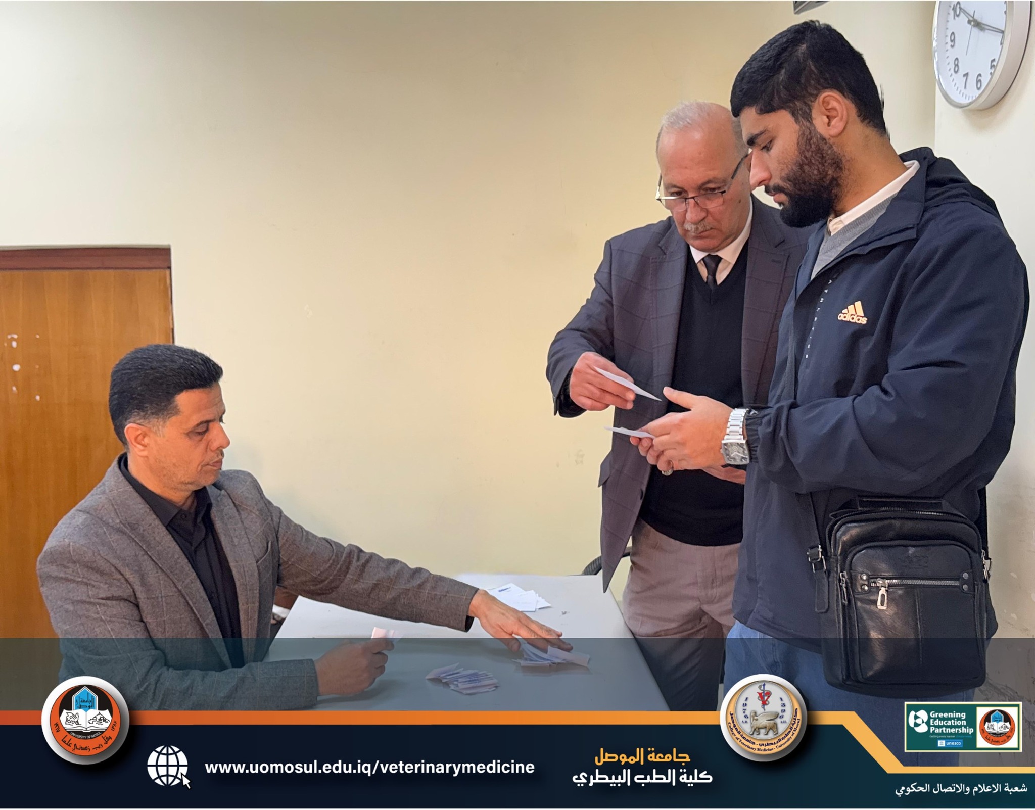 باشراف مباشر من الاستاذ الدكتور رعد عبدالغني بشير معاون العميد للشؤون العلمية وحضور كل من الاستاذ المساعد الدكتور عمار غانم محمد والاستاذ المساعد الدكتور ياسر محمد امين والاستاذ المساعد الدكتور زياد مكرم يوسف مسؤول شعبة الاعلام والاتصال الحكومي جرت اليوم انتخابات ممثل المرحلة الاولى بجو من الهدوء والديمقراطية ، حيث تنافس ثلاثة مرشحين وجرى التصويت لهم من قبل الطلبة بكل شفافية وديموقراطية وفاز الطالب مصطفى محمد بأغلبية الاصوات.