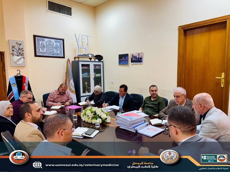 في إطار السعي المستمر للنهوض بمستوى التعليم في الكلية، تم استضافة الدكتور عمر رعد رياض (نقيب الأطباء البيطريين – الموصل) في جلسة مجلس كلية الطب البيطري يوم الاثنين الموافق 7-4-2025 إذ ترأس هذه الجلسة الأستاذ الدكتور ظافر محمد عزيز عميد الكلية وحضرها أيضاً الأستاذ الدكتور رعد عبدالغني بشير معاون العميد للشؤون العلمية والاستاذ الدكتور سيفان سعد المحمود معاون العميد للشؤون الادارية والمالية بالإضافة إلى السادة رؤساء الفروع العلمية.