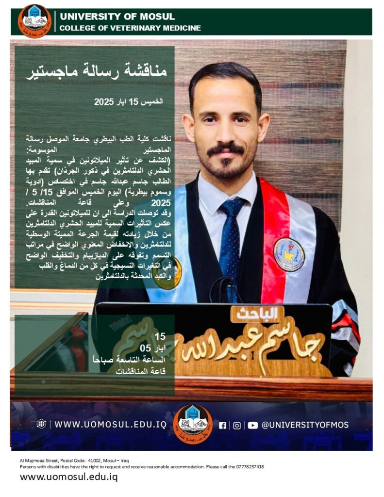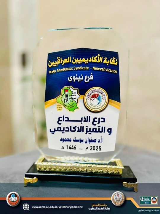 بمناسبة اليوم الاكاديمي العراقي وبحضور السيد رئيس لجنة التعليم العالي النيابية الاستاذ الدكتور مزاحم قاسم الخياط والاستاذ الدكتور وحيد محمود الابراهيمي رئيس جامعة الموصل تم تكريم كل من: