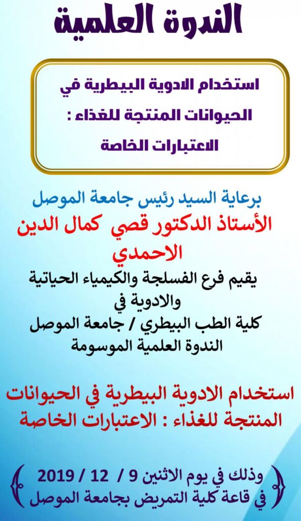 جرى صباح اليوم الاثنين 2 / كانون الاول / 2019 افتتاح الدورة التدريبية “تخدير الحيوانات المختبرية” والتي يقيمها فرع الجراحة وعلم تناسل الحيوان، وقد افتتح الدورة السيد وكيل عميد كلية الطب البيطري الاستاذ الدكتور ظافر محمد عزيز والسيد رئيس فرع الجراحة وعلم تناسل الحيوان الاستاذ الدكتور ليث محمود القطان، وقد تضمنت فعاليات اليوم الاول القاء محاضرات علمية لنخبة من تدريسي الفرع، حيث القى الاستاذ الدكتور منير سالم طه مقدمة عن الحيوانات المختبرية، تلاها محاضرة أخرى للأستاذ الدكتور ليث محمود القطان بعنوان (أنواع الحيوانات المختبرية وتحضير الحيوانات والمواد المستخدمة بالتخدير)، ثم محاضرة اخرى للدكتور ميسر غانم ذنون بعنوان (طرق اعطاء الادوية “نظرة عامة”)، ليتم بعدها اجراء تطبيق عملي عن المواد المستخدمة وطرق الاعطاء المختلفة من قبل (.د أسماء حسين علاوي، م. مي ذنون، م.م. احمد سعد محمد علي).