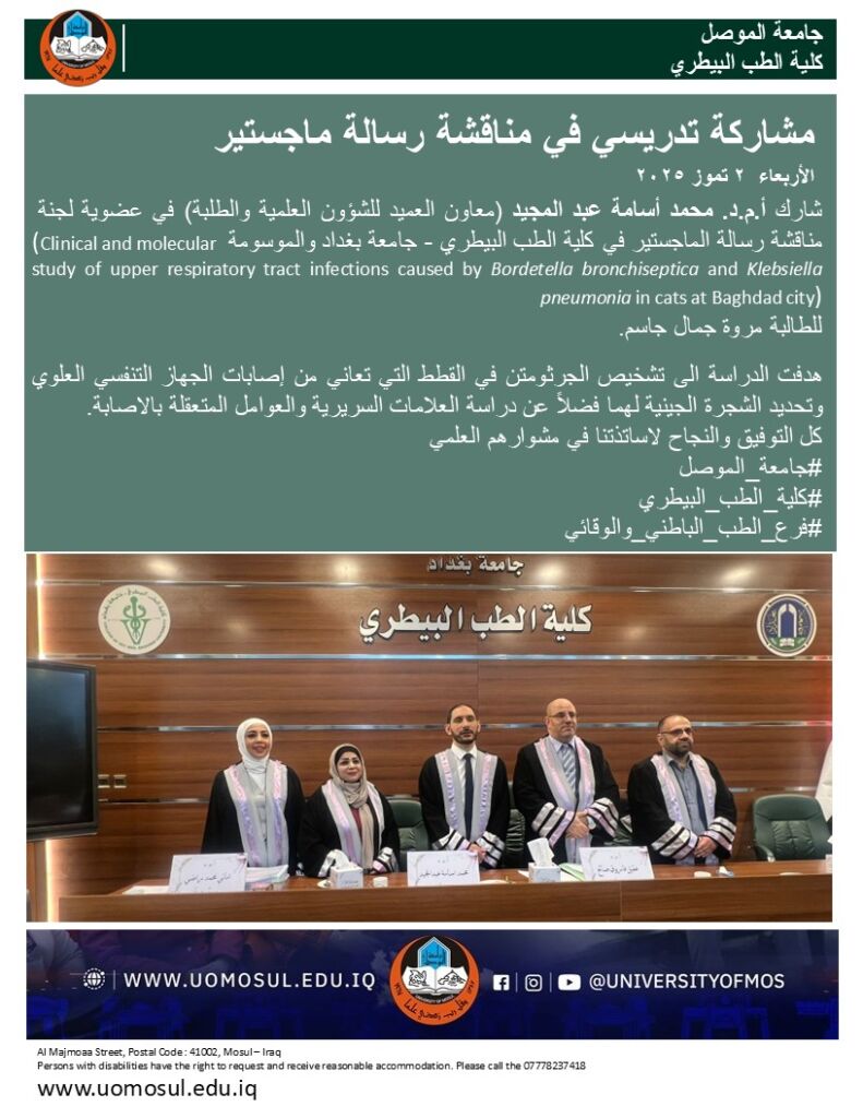 مشاركة تدريسي في مناقشة رسالة ماجستير