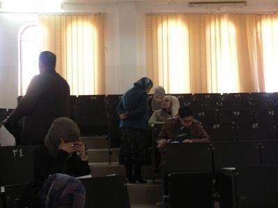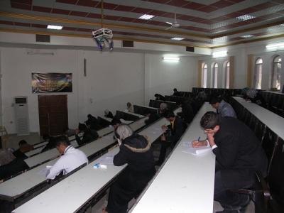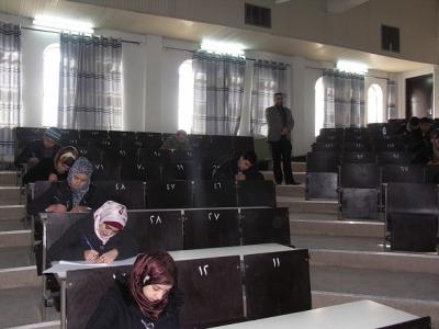 جرت يوم الثلاثاء 7 / 1 / 2014 الامتحانات النهائية للكورس الاول لطلبة السنة الاولى والذين اتبع بدراستهم الحالية نظام الكورسات لاول مرة ، وزارت السيدة عميد الكلية الاستاذ الدكتورة انتصار رحيم الكناني يرافقها السيد معاون العميد العلمي قاعات الامتحان للاطلاع على سير الامتحانات
