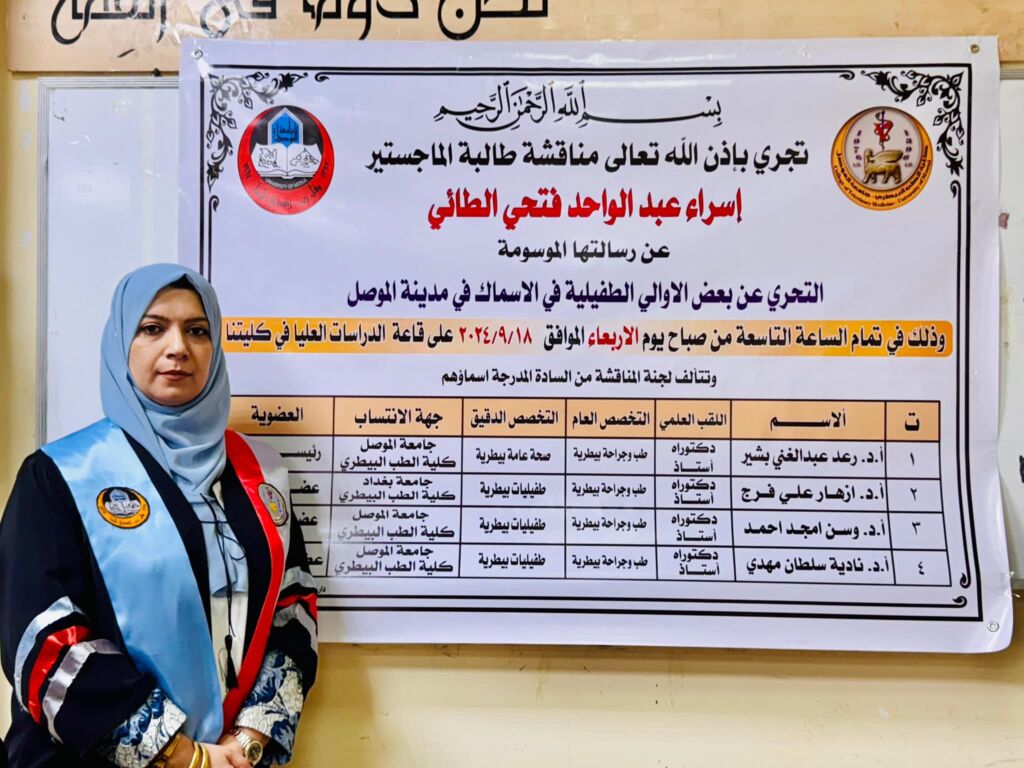 ضمن اطار التعاون بين الجامعات العراقية وكليات الطب البيطري ، باشراف مشترك كل من أ.م. د. زێرڤان عبد الرزاق وعضوية الاستاذ الدكتور عمار غانم / تدريسي في فرع التشريح ، تمت مناقشة أطروحة الدكتوراه الخاصة بطالبة الدراسات العليا ( ميان أحمد سلي )وذلك في يوم الخميس الموافق 19 أيلول 2024 في كلية الطب البيطري/ جامعة دهوك