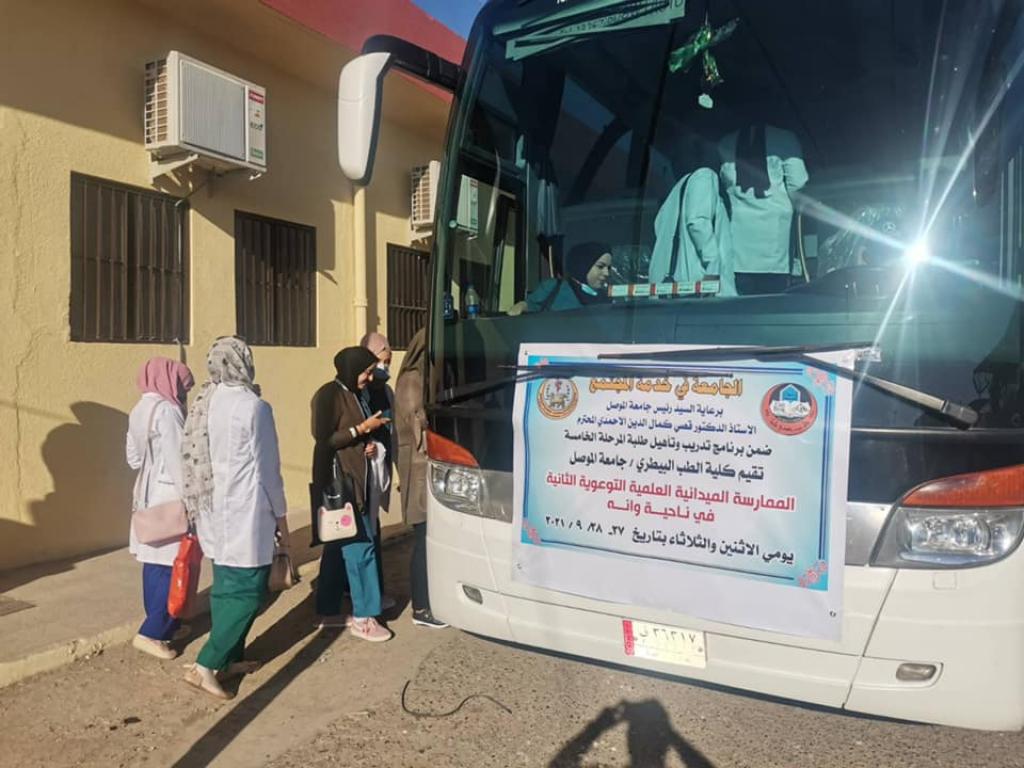 برعاية السيد رئيس جامعة الموصل الاستاذ الدكتور قصي كمال الدين الاحمدي وضمن نشاطات كلية الطب البيطريومن منطلق الجامعة في خدمة المجتمع وبأشراف مباشر من السيد عميد كلية الطب البيطري الاستاذ الدكتور ظافر محمد عزيز، جرت اليوم الاثنين ٢٧/ ٩ / ٢٠٢١ الممارسة الميدانية لطلبة كلية الطب البيطري جامعة الموصل وبمشاركة طلبة المرحلة الخامسة واساتذة الكلية للفروع التطبيقية في الكلية جرت الممارسة الميدانية في قرى ناحية وانه وتم استقبال الحالات المرضية للمربين وأجرى الفحص السريري والمختبري للحالات وإعطاء العلاج المناسب والنصائح الهامة للمربين وقد **حضر هذه الممارسة الاستاذ الدكتور قصي كمال الدين الأحمدي ومدير ناحية وانه الاستاذ علي محمد صالح المعماري من أجل الاطلاع على سير الممارسة الميدانية..وقد استفاد اليوم من هذه الممارسة الميدانية ٧٦ حالة موزعين على فروع الكليةاذا زار فرع الطب الباطني والوقائي ٤٠ مراجع لحالات مختلفة من أمراض الأبقار والاغنام وتم فحص سريريا و١٠ حالات اجري لها الفحص المختبري من فحوصات الدم والبرازبينما زار فرع الأمراض وأمراض الدواجن والاسماك ٢٦ مراجع لحالات مختلفة من الدجاج المنزلي وطيور الزينة والاسماكفي حين أجرى فرع الجراحة والتوليد عملياتلحالات خراج في الاغنام واجرى فحوصات الحمل لثلاث حالات من الأبقار..والجدير بالذكر ان هذا العمل تم بالتعاون مع ….شركة مدينة تاج العلوم لتحارة الادوية البيطرية