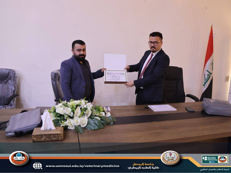 ضمن اطار خدمة المجتمع ولغرض تأهيل الأطباء البيطريين في القطاع الخاص للإشراف على حقول الدواجن وبالتعاون مع المستشفى البيطري في نينوى ونقابة الاطباء البيطريين فرع نينوى