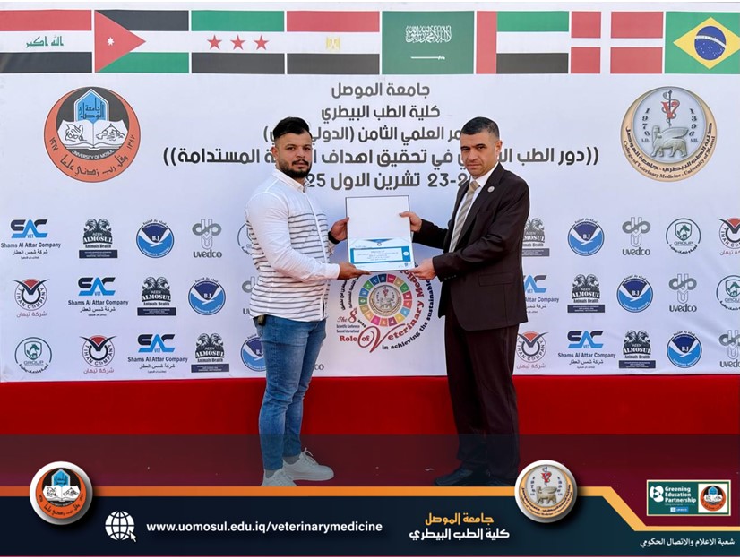 وفي ختام الفعالية، تم منح الشركات والمكاتب المشاركة شهادات تقديرية من قبل السيد عميد كلية الطب البيطري الأستاذ الدكتور سيڤان سعد المحمود تقديراً لجهودهم ومساهمتهم في إنجاح المؤتمر.