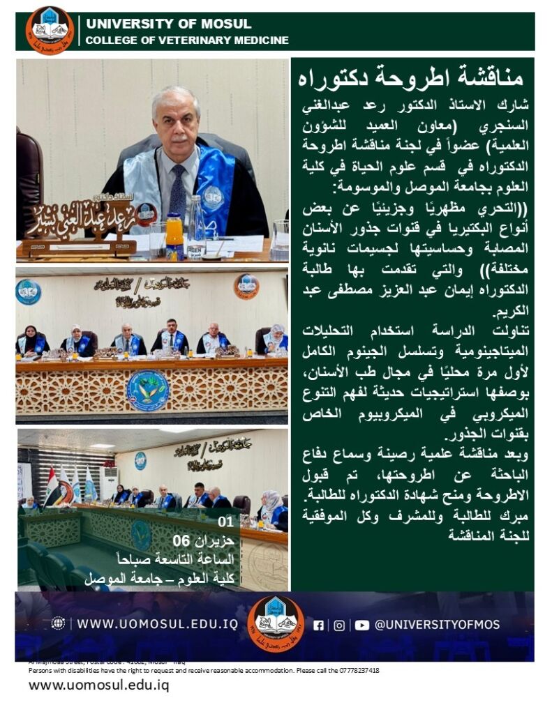 نبارك لجامعة الموصل ولكلية الطب البيطري ولهيئة تحرير المجلة هذا الإنجاز العلمي الجديد، إذ تعد قفزة نوعية لم يسبق لأية مجلة عراقية أو عربية الوصول الى معامل الاستشهاد هذا، فضلا عن كونها المجلة العربية والعراقية الأولى عالمياً في اختصاصين مختلفين.