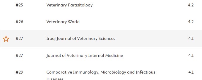 المجلة العراقية للعلوم البيطرية في المرتبة 27 عالميا، وبمعامل استشهاد 4.1 للعام 2024