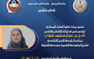 باسم عمادة كلية الطب البيطري، وباسم رئيس فرع الفسلجة والكيمياء الحياتية والأدوية، وكافة منتسبي الفرع، نتقدم بأسمى آيات الشكر والتقدير إلى المدرس المساعد سحر محمود شهاب بمناسبة بلوغها السن التقاعدي، تقديرًا لجهودها الكبيرة وخدمتها الجليلة [إقرأ المزيد]