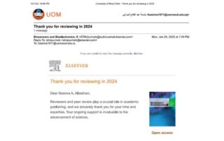 يحرص اساتذتنا على تقييم البحوث العلمية لمجلات محلية وعالمية، حيث قيمت الاستاذ الدكتورة باسمة عبدالفتاح البدراني (فرع الطب الباطني والوقائي) بحثين علميين لمجلة Biosensors & Bioelectronics X وهي من المجلات العلمية التي تندرج ضمن مستوعبات [إقرأ المزيد]