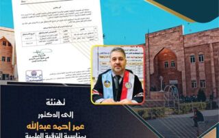 ترقية علمية ====== تتقدم عمادة كلية الطب البيطري متمثلة بالاستاذ الدكتورظافر محمد عزيز ونيابة عن منتسبيها كافة بالتهنئة الى الدكتور عمر أحمد عبدالله /تدريسي في فرع الصحة العامة البيطرية بمناسبة الترقية العلمية الى مرتبة استاذ [إقرأ المزيد]