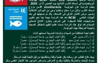 ناقشت كلية الطب البيطري جامعة الموصل رسالة الماجستير الموسومة: (دراسة مرضية وتشخيصية جزيئية للإصابة التجريبية بجرثومة البروفيدينسيا في أسماك الكارب الشائع) يوم الخميس 7 اب 2025. بحثت الدراسة عزل الجرثومة P. alcalifaciens ،من مزارع اسماك [إقرأ المزيد]