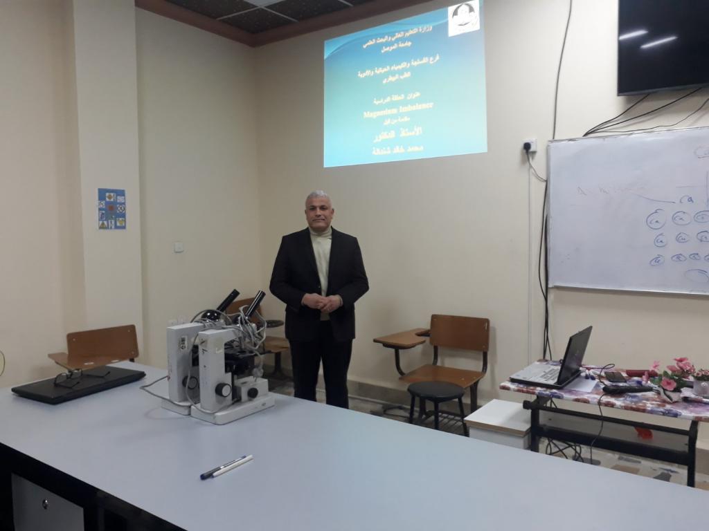 ضمن النشاطات العلمية لفرع الفسلجة والكيمياء الحياتية والادوية القت أ.د.غادة عبدالمنعم فارس حلقة دراسية بعنوان “الاغذية المعدلة وراثيا بين القبول والرفض”كما القى أ.د.محمد خالد طه حلقة دراسية اخرى بعنوان “Magnesium imbalance”وذلك على قاعة مختبر الفسلجة وبحضور السيد رئيس الفرع وعدد من السادة التدريسيين.