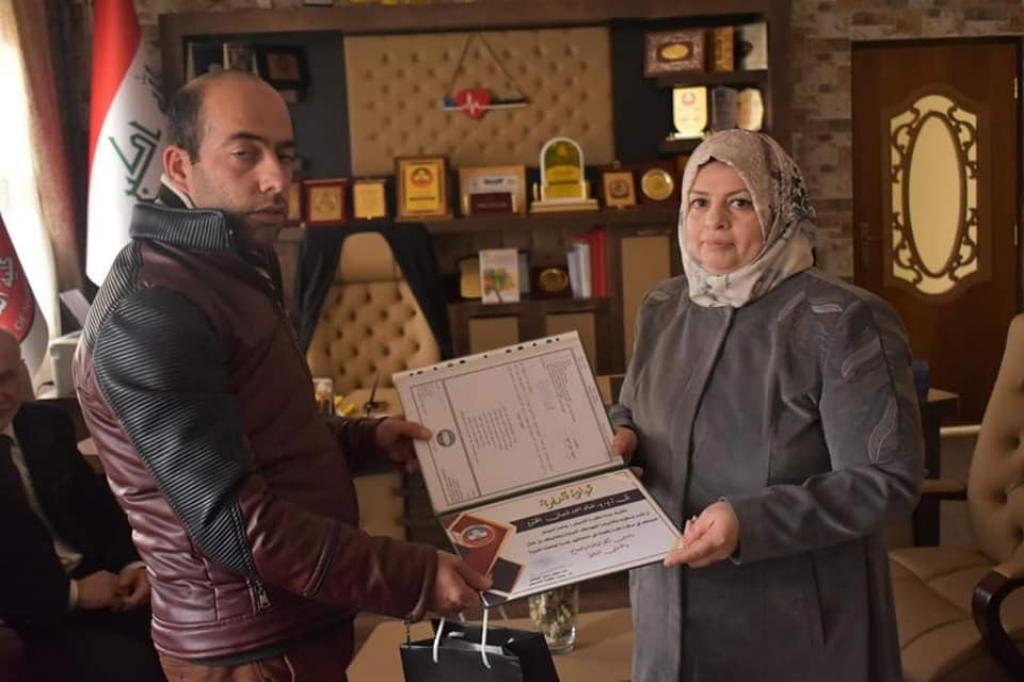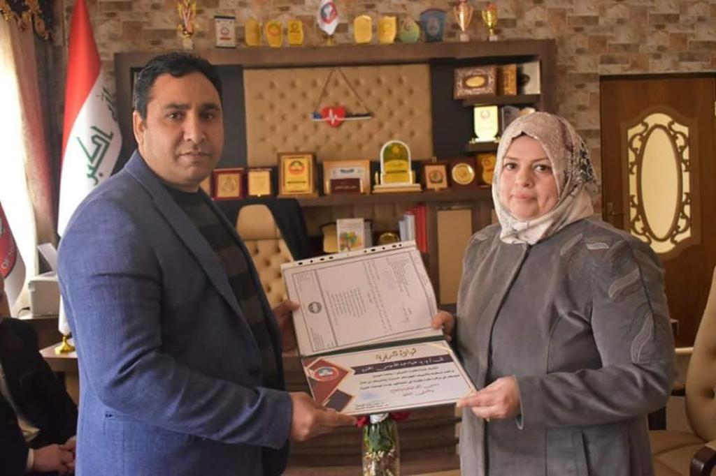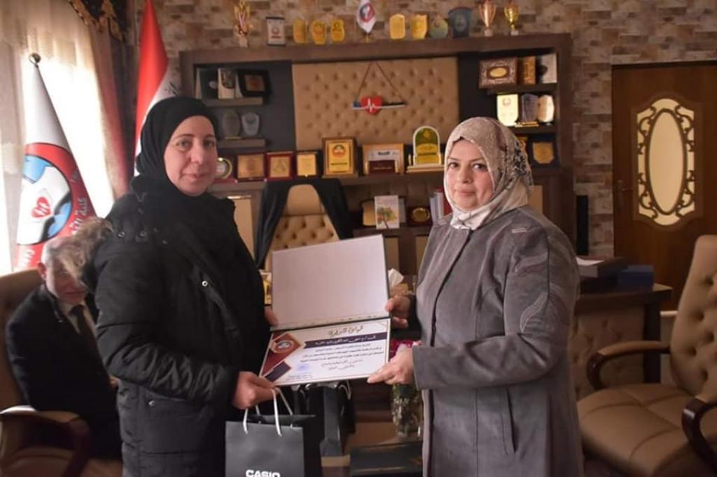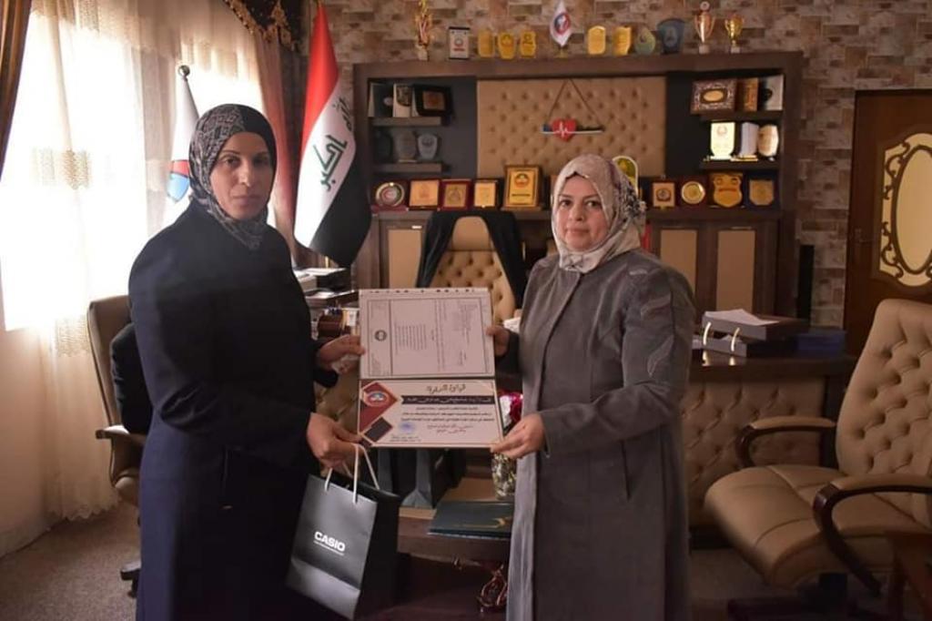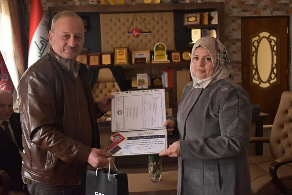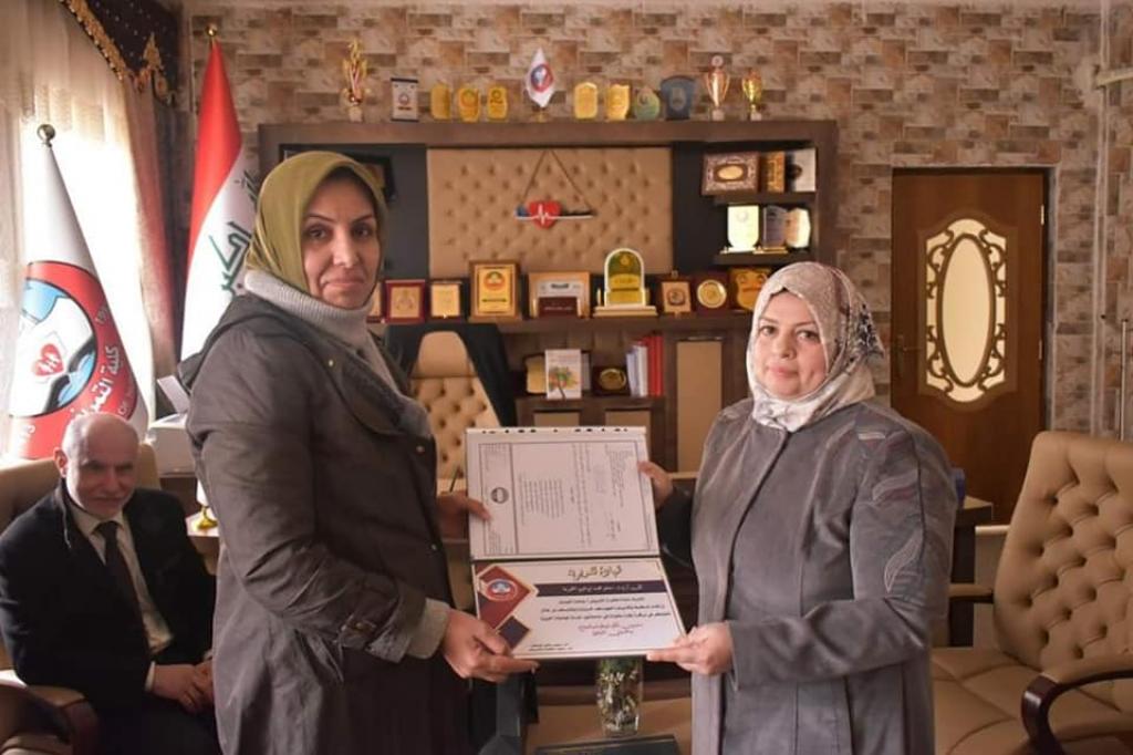 درع كلية التمريض إلى السيد عميد كلية الطب البيطري وشهادات تقديرية الى عدد من تدريسي الكلية في إطار التعاون المشترك بين الكليتين