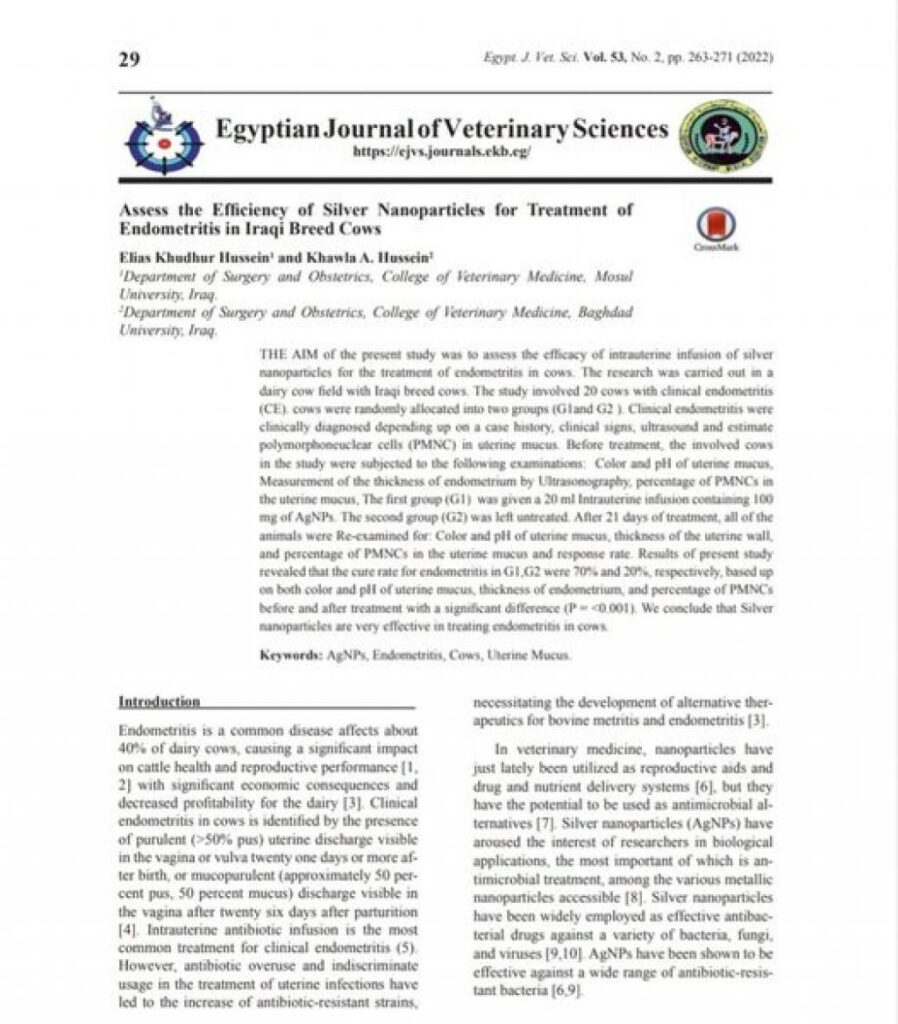 نشر بحث علمي لتدريسي في فرع الجراحة وعلم تناسل الحيوان