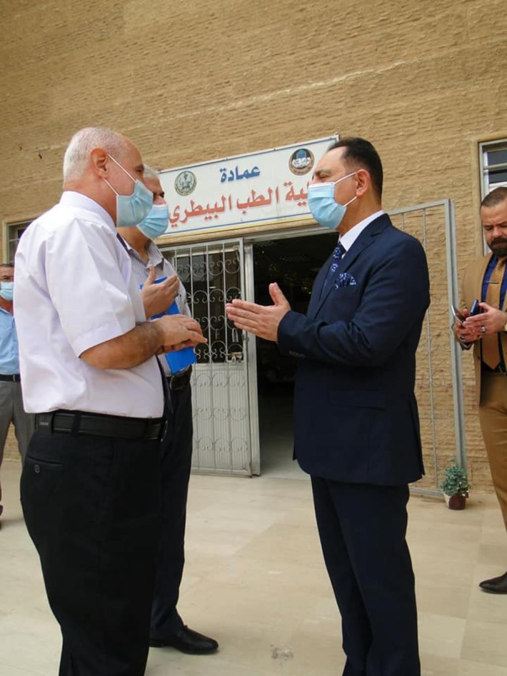 زار السيد رئيس جامعة الموصل الاستاذ الدكتور قصي كمال الدين الاحمدي كلية الطب البيطري اليوم الاحد ١ /٨/ ٢٠٢١ للاطلاع على سير العملية الامتحانية من خلال جولة قام بها رئيس الجامعة يرافقه عميد الكلية ومعاون العميد العلمي على القاعات الامتحانية والحديث الى الطلبة والتاكيد على ضرورة توفير المستلزمات المهمة للطلبة في هذه الظروف وفي القاعات الامتحانية،جدير بالذكر ان كلية الطب البيطري تتبع التعليمات الموجهة من وزارة التعليم العراقية ورئاسة جامعة الموصل في الالتزام بكافة الاجراءات الوقائية في ظل الظروف الراهنة للمحافظة على السلامة العامة..بدورها تشكر عمادة كلية الطب البيطري متمثلة بالاستاذ الدكتور ظافر محمد عزيز رئيس الجامعة على هذه الزيارة والتعاون في حل اي مشكلة قد تواجه الطلبة في هذه الظروف ومشكلة انقطاع الكهرباء في بعض الحالات…كل الموفقية لطلبة المرحلة الرابعة والمرحلة الثانية وطلبة الدراسات العليا في امتحانهم لهذا اليوم#عمادة_كلية_الطب_البيطري