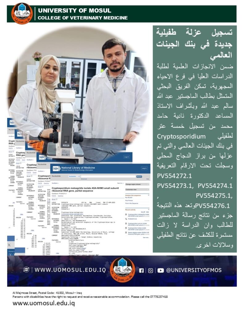 نشاطات فرع الاحياء المجهرية/تسجيل عزلة طفيلية جديدة في بنك الجينات العالمي