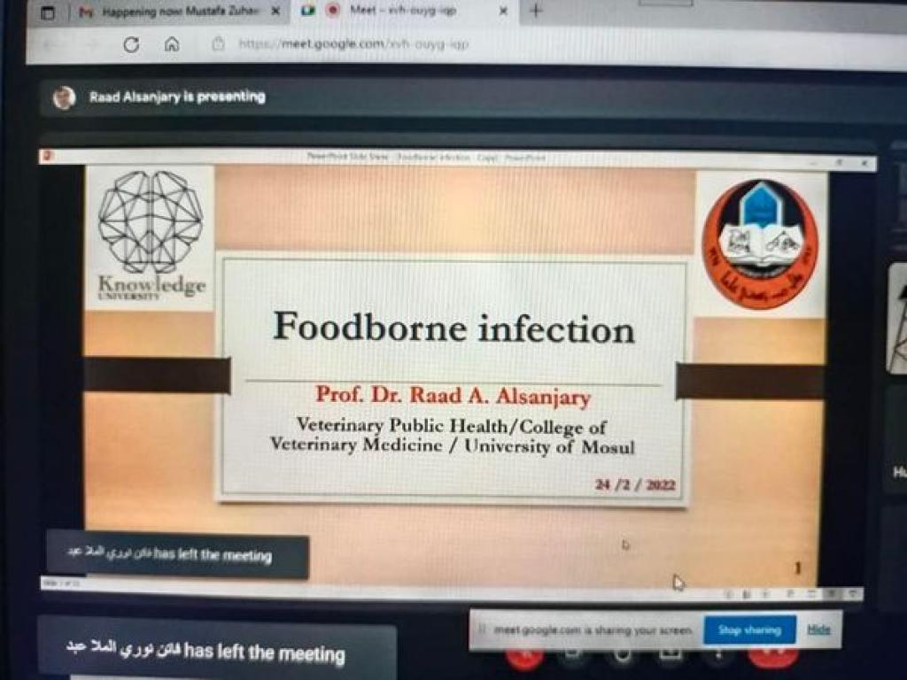 نحو بيارق العلم والمعرفة شارك تدريسي من كلية الطب البيطري جامعة الموصل متمثلة بالمعاون العميد العلمي الأستاذ الدكتور رعد عبدالغني السنجري ورشة عمل مع جامعة knowledge حول الامراض المنقولة عن طريق الغذاء يوم الخميس الموافق ٢٤ / ٢ / ٢٠٢٢ ومن خلال google meet.حيث هدفت ورشة العمل بالتطرق عن تاثير الامراض المنقولة بالغذاء على صحة الانسان عدة محاضرات تطرق فيها الاساتذة المشاركين عن الجوانب المهمة لهذه الامراض وقد القى الاستاذ الدكتور اكرم العبودي من جامعة العلوم والتكنلوجيا في الاردن محاضرة اعطى من خلالها نظرة عامة عن اهمية وخطورة هذه الامراض على الانسان ثم القى الاستاذ الدكتور رعد عبد الغني السنجري من جامعة الموصل محاضرة عن اهم المسببات المرضية من الاحياء المجهرية بكافة انواعها المنقولة عن طريق الغذاء وخطورتها على المستهلك ثم القى الاستاذ الدكتور ضاري عليوي من جامعة نولج في اربيل محاضرة عن سموم الأحياء المجهرية المنقولة عن طريق الغذاء وخطورتها على الانسان واخيرا القى الاستاذ المساعد محمد ناجي من جامعة كيلنتان في ماليزيا محاضرة عن السيطرة على هذه الامراض التي تهدد حياة الانسان وكيفية منع حدوثها وماهي السبل والطرق المتبعة من قبل الانسان للحد منها وتجنب حدوثه .كل التوفيق لاساتذتنا الافاضل ……#عمادة_كلية_الطب_البيطري#اساتذتنا_فخرنا
