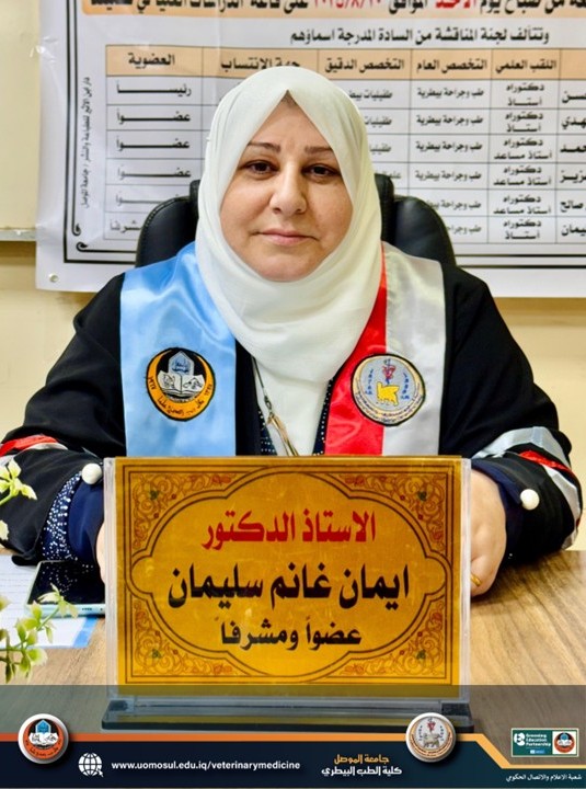6- أ.د. ايمان غانم سليمان (كلية الطب البيطري- جامعة الموصل) – عضواً ومشرفاً.