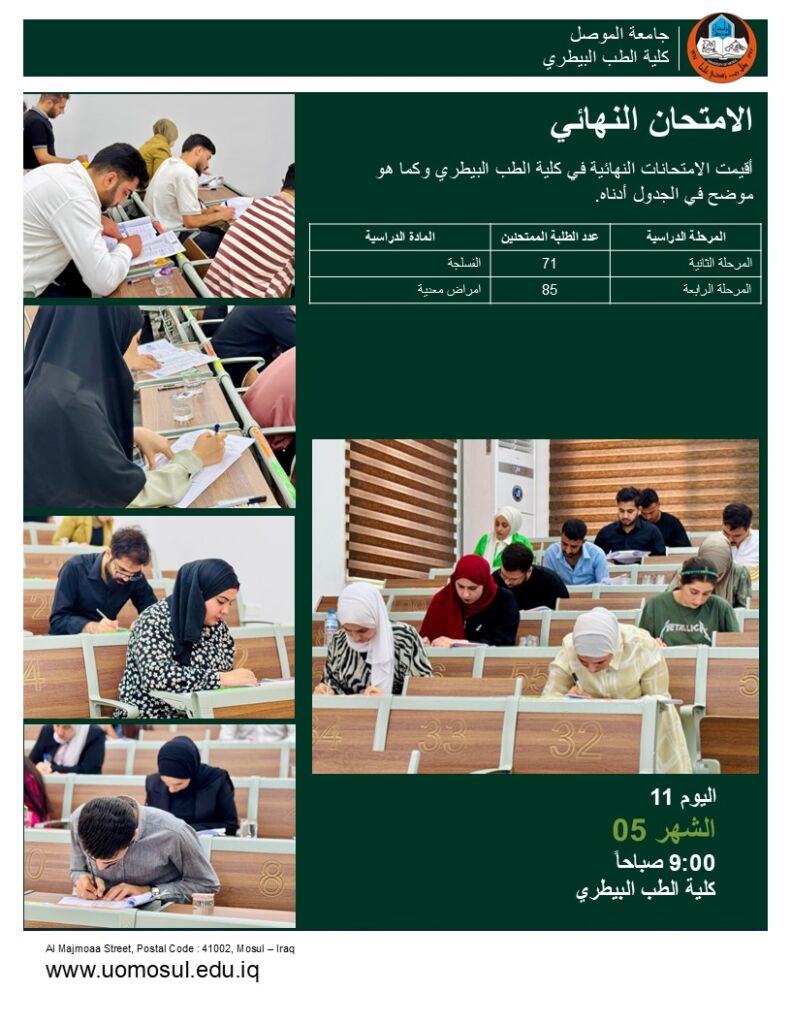 ناقشت كلية الطب البيطري جامعة الموصل رسالة الماجستير الموسومة: