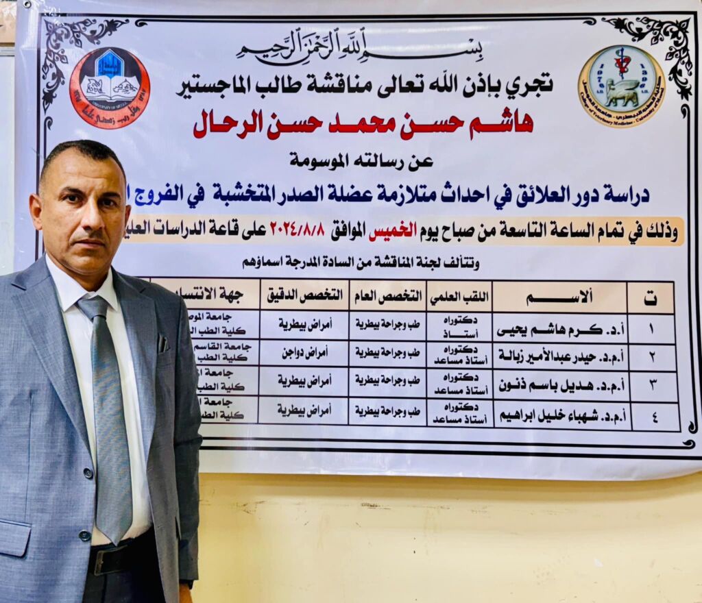 حيث جرت المناقشة يوم الاربعاء الموافق 7-8-2024 في قاعة المناقشات في كلية الطب البيطري