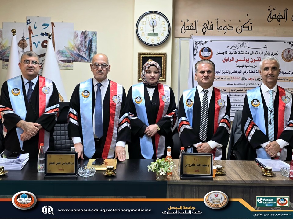ناقشت كلية الطب البيطري جامعة الموصل رسالة الماجستير الموسومة:
