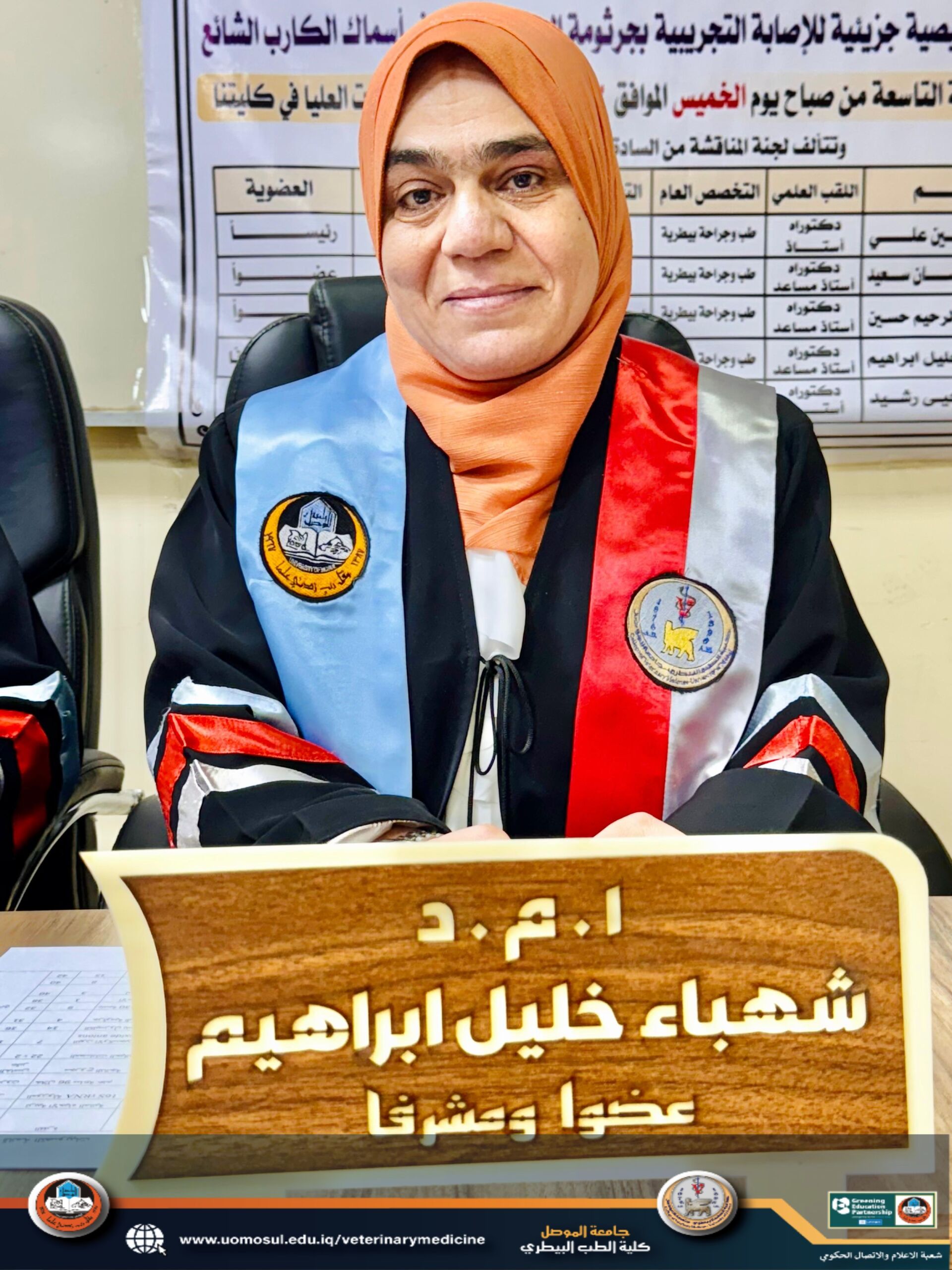 4- أ.م.د. شهباء خليل ابراهيم (كلية الطب البيطري- جامعة الموصل) – عضواً ومشرفاً.